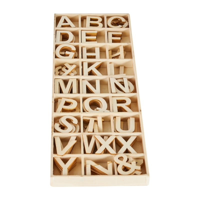 Houten letters in kistje - set van 162