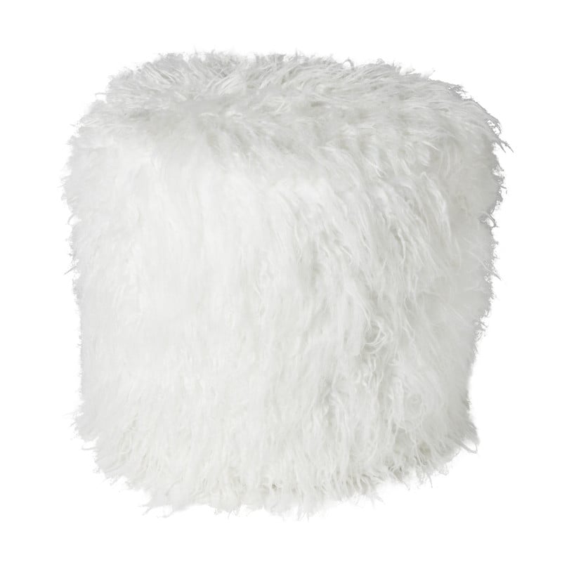 Poef fluffy - wit - 38x42x42 cm