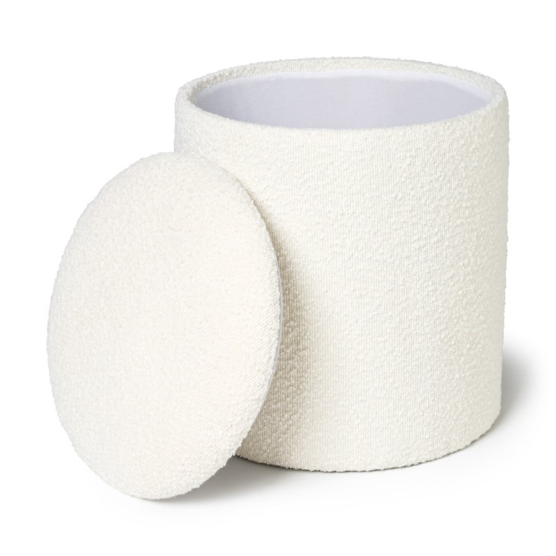 Opbergpoef ribstof - beige - Ø35x38 cm