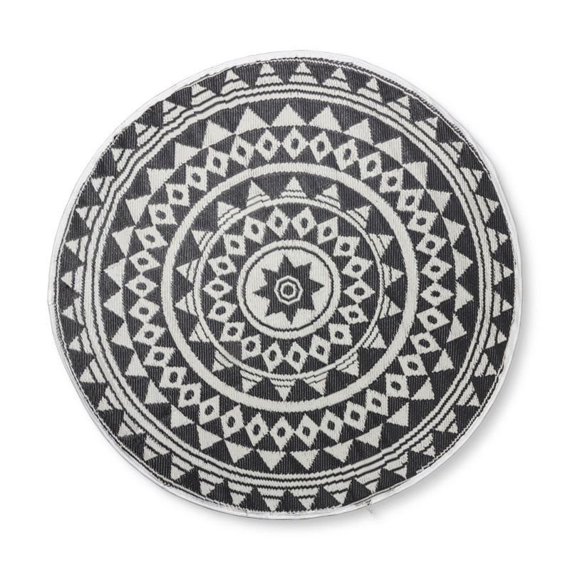 Buitenkleed mandala - zwart/wit - Ø150 cm