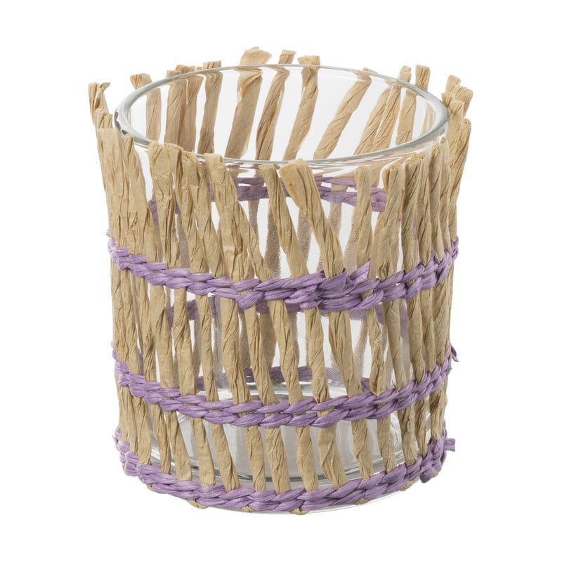 Waxinelichthouder riet - paars - Ø8x9 cm