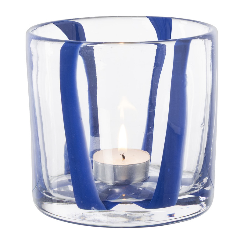 Waxinelichthouder riet - blauw - Ø8x9 cm