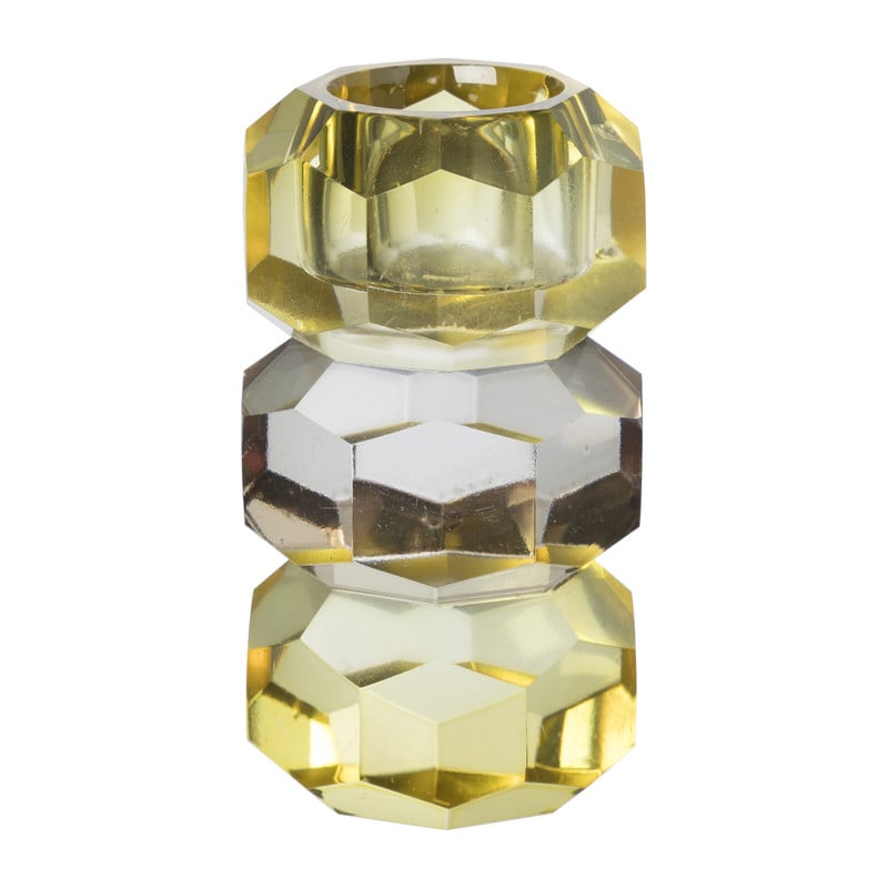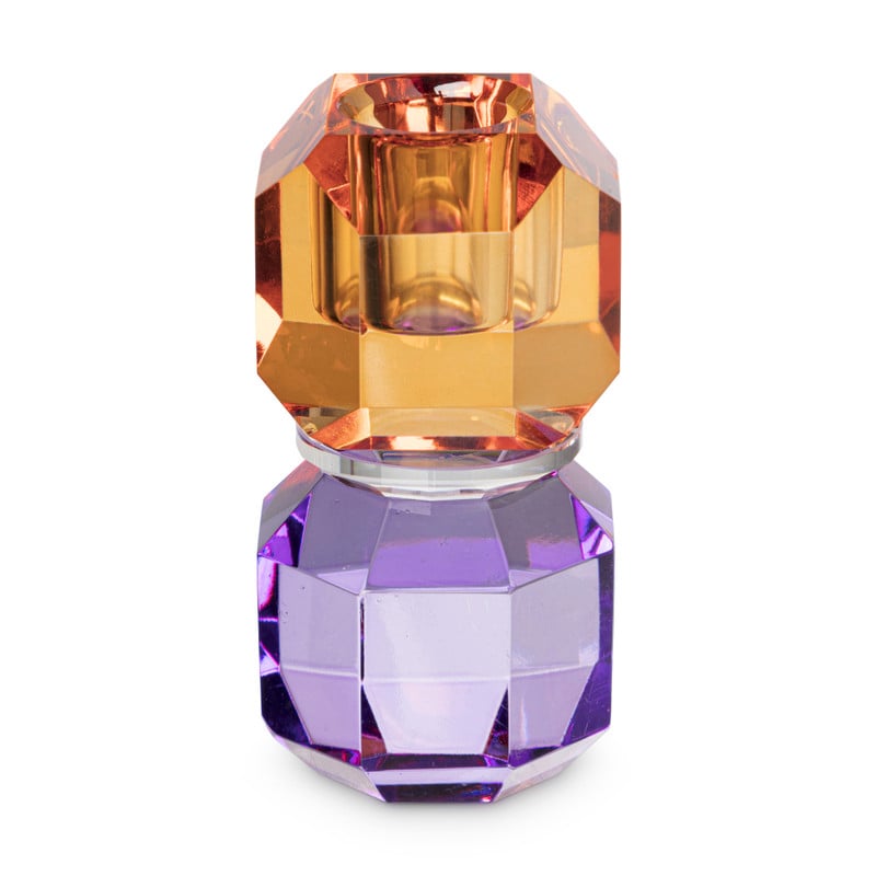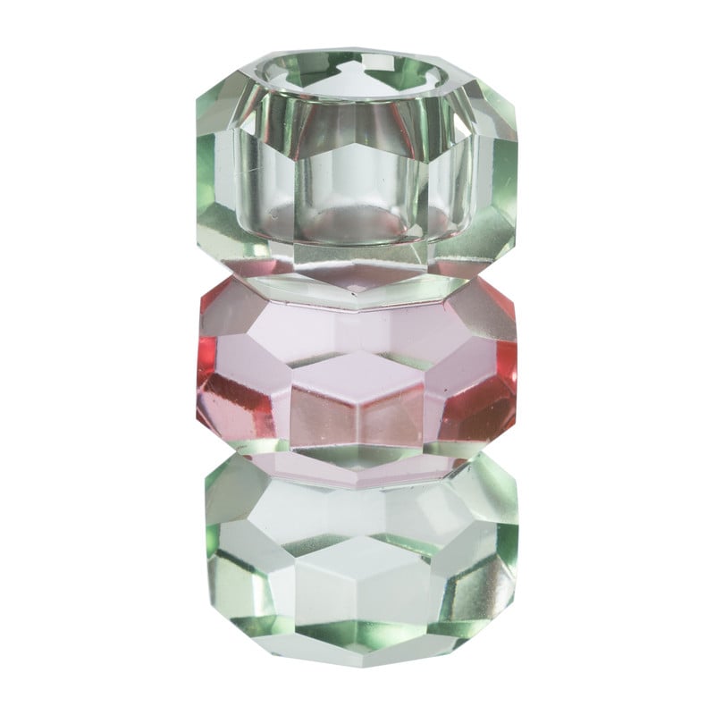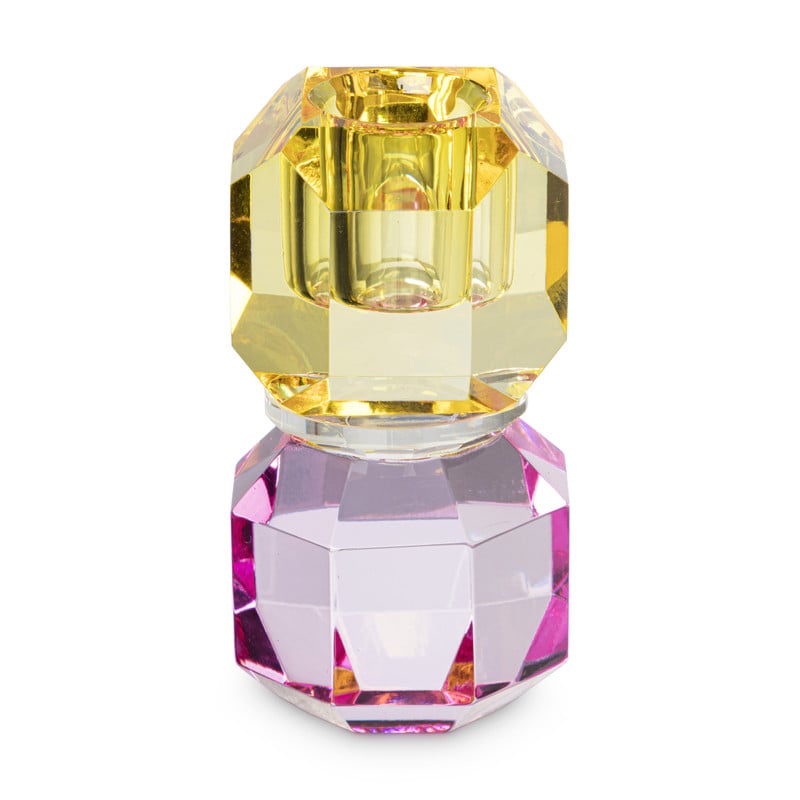 Kandelaar kristal - roze/geel - Ø5.5x9 cm