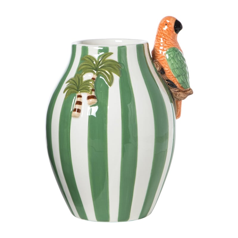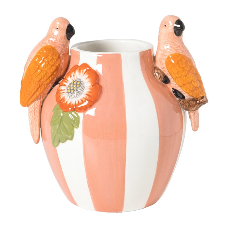 Vaas streep papegaai - roze - 17x14x18.2 cm